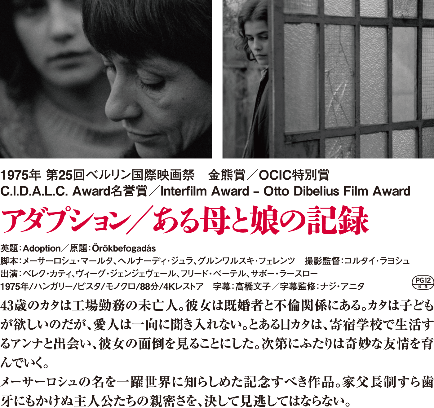 最高傑作の数々を世に送り出した、ハンガリーを代表する女性監督メーサーロシュ・マールタの作品が日本でも鑑賞できるようになることを歓迎します。人間ドラマとハンガリーの20世紀の歴史も描かれる作品を是非ご覧ください。