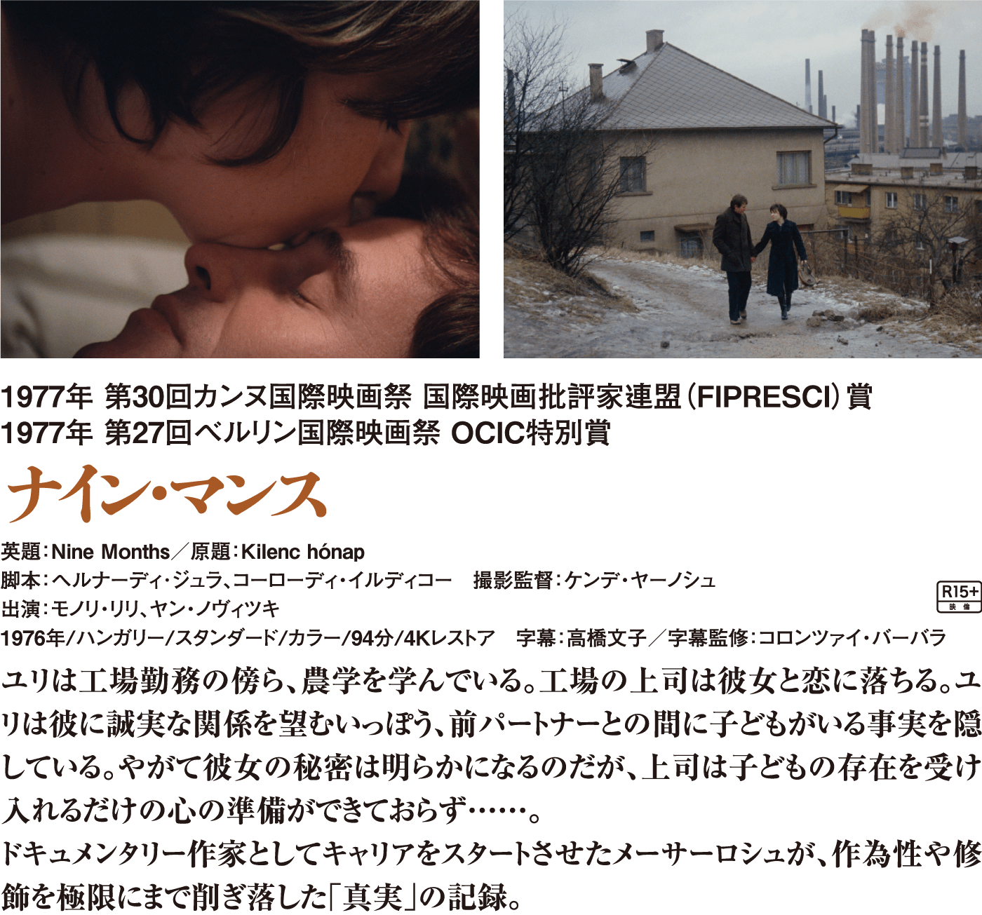 共産体制下のフェミニズムが鮮烈に描かれていることに感銘を受け、その問題意識が現在世界でも通用してしまうことに嘆き、クールなリアリズムのタッチに息を呑む。疑似母娘関係で結ばれるふたりの女性の心情を伝えるショットの積み重ねはしなやかにして優雅だ。やがて、親、パートナー、そして子を持つことへの普遍的なエモーションが張り詰める。疑いなくメーサーロシュ・マールタ監督の傑作のひとつであり、本作ほど、いま再発見されるにふさわしい作品はないだろう。